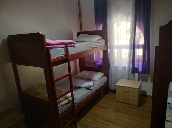 Kjo dhome ndodhet ne katin e pare.Ka 4 krevat dyshe marinari.Ka interrnet falas ne çdo dhome dhe ne ambjentet e perbashketa.Ka banje te perbashket.Akomodimi dhe mengjesiAkomodimi me tre vakte Per femijet nen moshen 10 vjeç eshte me gjysem çmimi.Nuk lejohen kafshet shtepiake ne fjetje brenda.